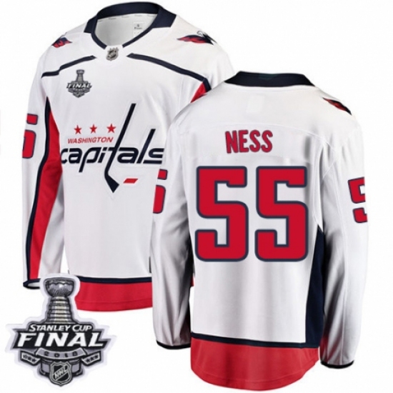 Men's Washington Capitals #55 Aaron Ness Fanatics Branded White Away Breakaway 2018 Stanley Cup Final NHL Jersey