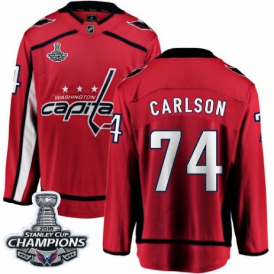 Men's Washington Capitals #74 John Carlson Fanatics Branded Red Home Breakaway 2018 Stanley Cup Final Champions NHL Jersey