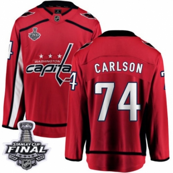 Men's Washington Capitals #74 John Carlson Fanatics Branded Red Home Breakaway 2018 Stanley Cup Final NHL Jersey