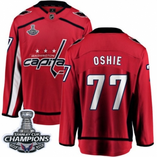 Men's Washington Capitals #77 T.J. Oshie Fanatics Branded Red Home Breakaway 2018 Stanley Cup Final Champions NHL Jersey