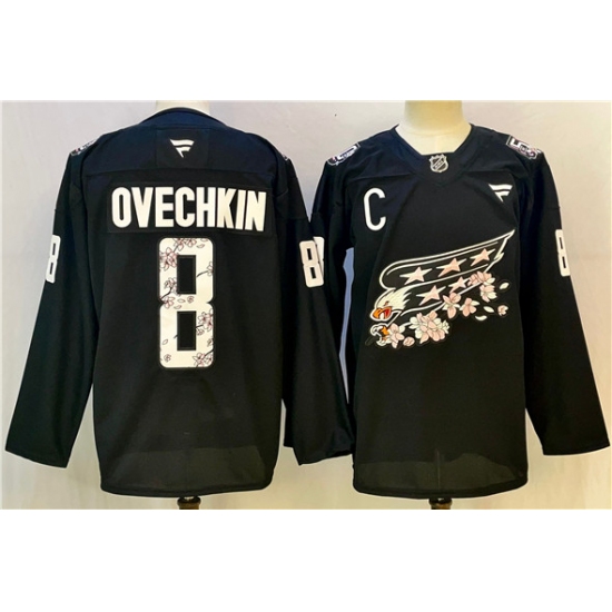 >Men's Washington Capitals #8 Alex Ovechkin Black Cherry Blossom With C Stitched Hockey Jersey