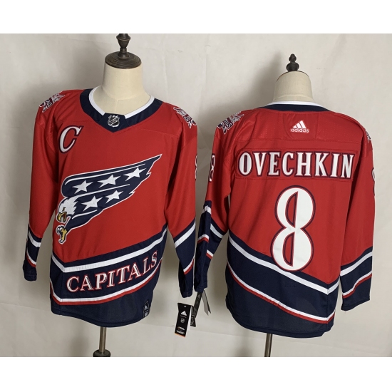 >Men's Washington Capitals #8 Alex Ovechkin Red Authentic Classic Stitched Jersey