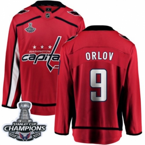 Men's Washington Capitals #9 Dmitry Orlov Fanatics Branded Red Home Breakaway 2018 Stanley Cup Final Champions NHL Jersey