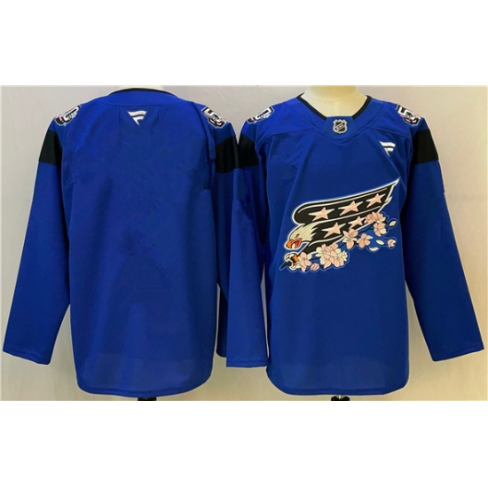>Men's Washington Capitals Blank Blue Cherry Blossom Stitched Hockey Jersey
