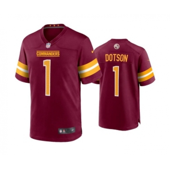 >Men's Washington Commanders #1 Jahan Dotson 2022 Burgundy Game Stitched Football Jersey