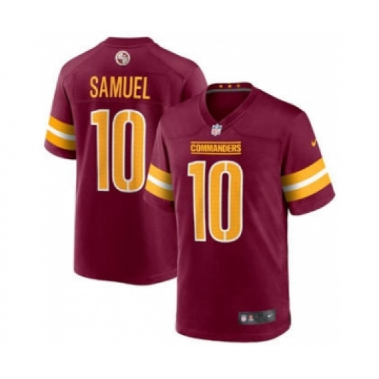 >Men's Washington Commanders #10 Curtis Samuel 2022 Burgundy Game Stitched Jersey