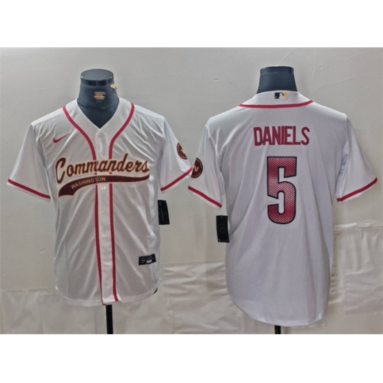 >Men's Washington Commanders #5 Jayden Daniels White With Cool Base Stitched Baseball Jersey