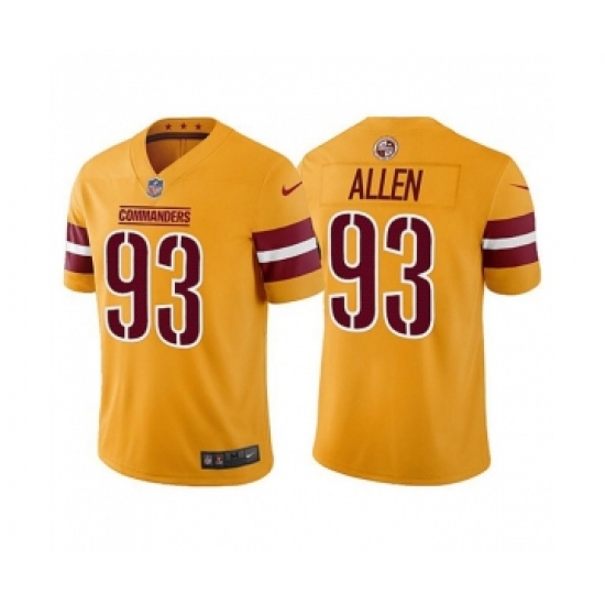 >Men's Washington Commanders #93 Jonathan Allen Gold Vapor Untouchable Stitched Football Jersey