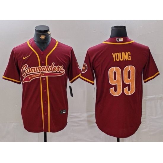 Men's Washington Commanders #99 Chase Young Burgundy Cool Base Stitched Baseball Jersey