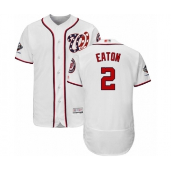 Men's Washington Nationals #2 Adam Eaton White Home Flex Base Authentic Collection 2019 World Series Champions Baseball Jersey