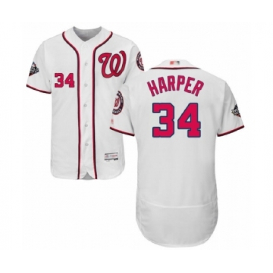 Men's Washington Nationals #34 Bryce Harper White Home Flex Base Authentic Collection 2019 World Series Bound Baseball Jersey