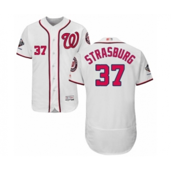 Men's Washington Nationals #37 Stephen Strasburg White Home Flex Base Authentic Collection 2019 World Series Champions Baseball Jersey