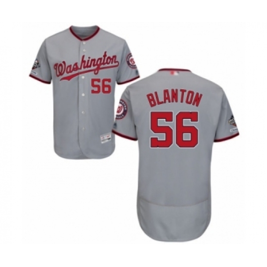 Men's Washington Nationals #56 Joe Blanton Grey Road Flex Base Authentic Collection 2019 World Series Champions Baseball Jersey