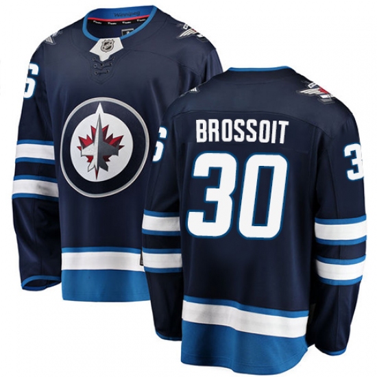 Men's Winnipeg Jets #30 Laurent Brossoit Fanatics Branded Navy Blue Home Breakaway NHL Jersey