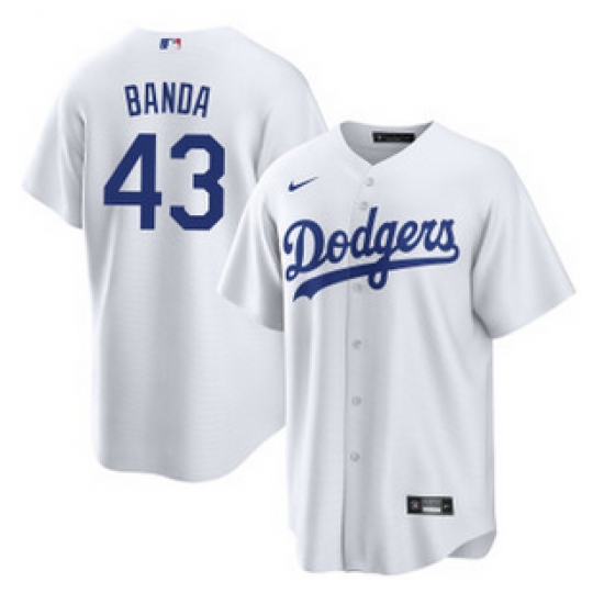 >Mens's Los Angeles Dodgers #43 Anthony Banda White Cool Base Stitched Baseball Jersey