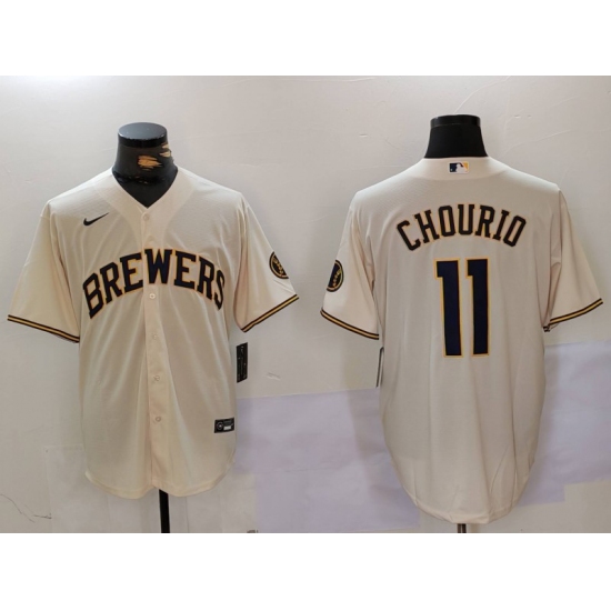 Milwaukee Brewers #11 Jackson Chourio Cream Stitched Cool Base Nike Jersey