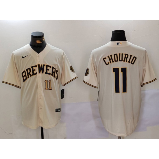 Men's Milwaukee Brewers #11 Jackson Chourio Number Cream Stitched Cool Base Nike Jersey