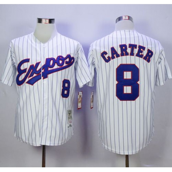 Mitchell And Ness 1982 Expos #8 Gary Carter White Throwback Stitched Baseball Jersey