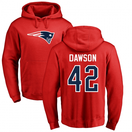 >NFL Nike New England Patriots #42 Duke Dawson Red Name & Number Logo Pullover Hoodie