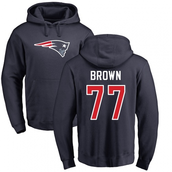 NFL Nike New England Patriots #77 Trent Brown Navy Blue Name & Number Logo Pullover Hoodie