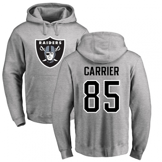 NFL Nike Oakland Raiders #85 Derek Carrier Ash Name & Number Logo Pullover Hoodie