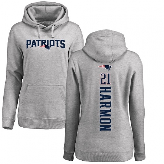 >NFL Women's Nike New England Patriots #21 Duron Harmon Ash Backer Pullover Hoodie