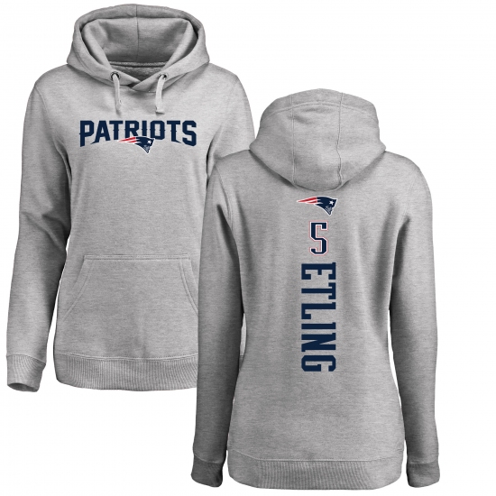 >NFL Women's Nike New England Patriots #5 Danny Etling Ash Backer Pullover Hoodie