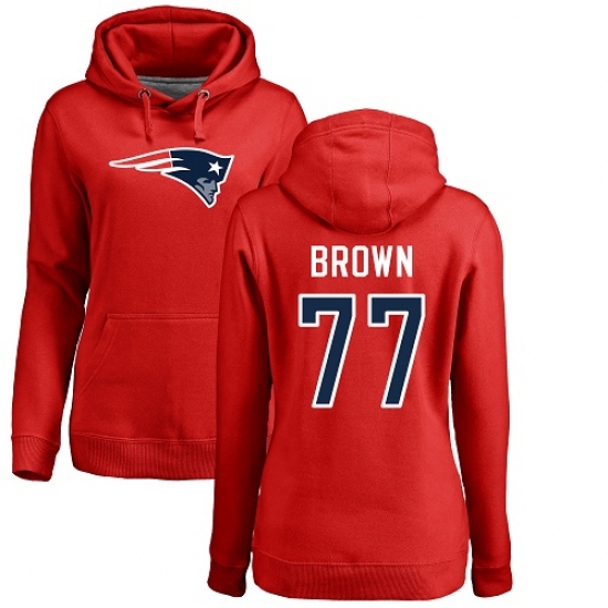 NFL Women's Nike New England Patriots #77 Trent Brown Red Name & Number Logo Pullover Hoodie