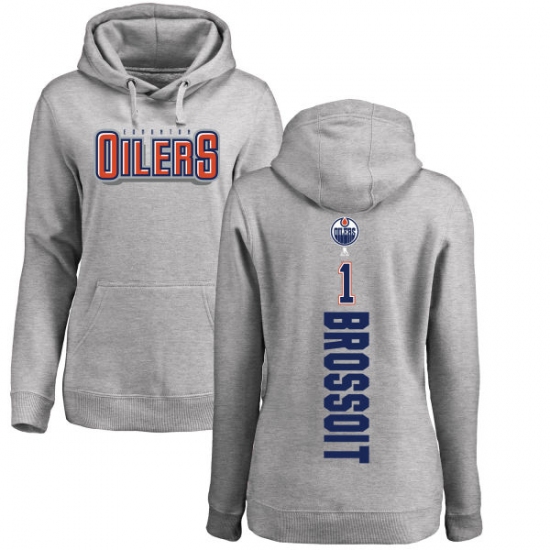 NHL Women's Adidas Edmonton Oilers #1 Laurent Brossoit Ash Backer Pullover Hoodie