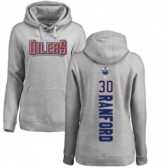 NHL Women's Adidas Edmonton Oilers #30 Bill Ranford Ash Backer Pullover Hoodie