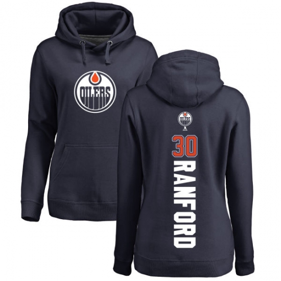 Home>NHL>Edmonton Oilers>Bill Ranford>NHL Women's Adidas Edmonton Oilers #30 Bill Ranford Navy Blue Backer Pullover Hoodie