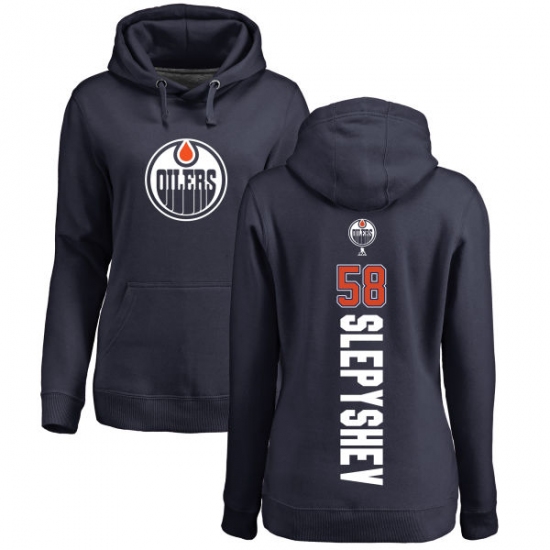 Home>NHL>Edmonton Oilers>Anton Slepyshev>NHL Women's Adidas Edmonton Oilers #58 Anton Slepyshev Navy Blue Backer Pullover Hoodie
