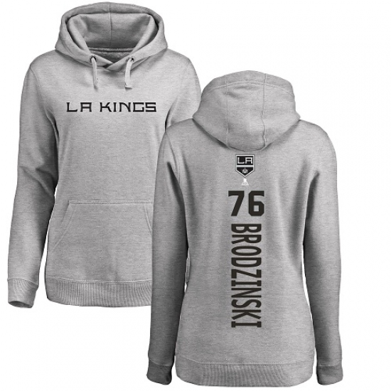 >NHL Women's Adidas Los Angeles Kings #76 Jonny Brodzinski Ash Backer Pullover Hoodie