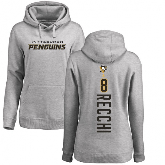 Home>NHL>Pittsburgh Penguins>Mark Recchi>NHL Women's Adidas Pittsburgh Penguins #8 Mark Recchi Ash Backer Pullover Hoodie