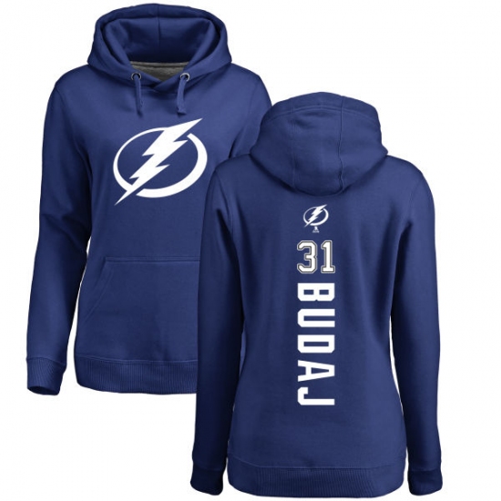 Home>NHL>Tampa Bay Lightning>Peter Budaj>NHL Women's Adidas Tampa Bay Lightning #31 Peter Budaj Royal Blue Backer Pullover Hoodie