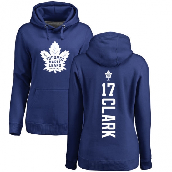 Home>NHL>Toronto Maple Leafs>Wendel Clark>NHL Women's Adidas Toronto Maple Leafs #17 Wendel Clark Royal Blue Backer Pullover Hoodie
