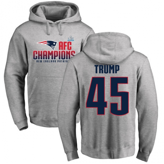 >Nike New England Patriots #45 Donald Trump Heather Gray 2017 AFC Champions Pullover Hoodie