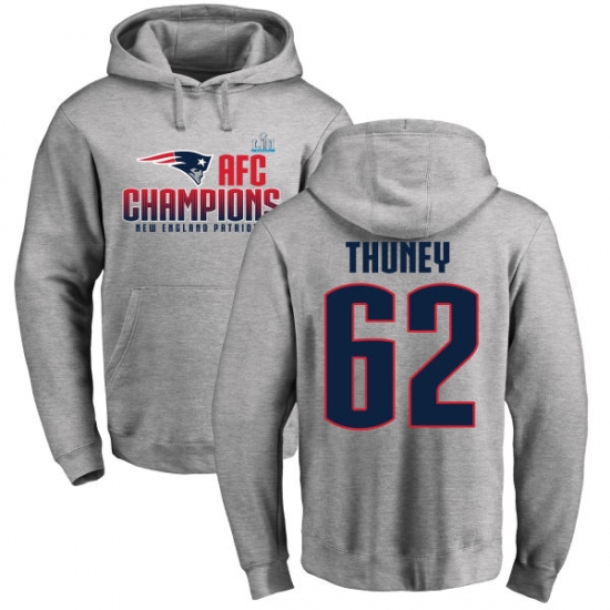 Nike New England Patriots #62 Joe Thuney Heather Gray 2017 AFC Champions Pullover Hoodie
