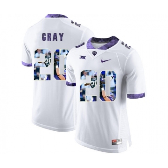 >TCU Horned Frogs 20 Deante Gray White With Portrait Print College Football Limited Jersey