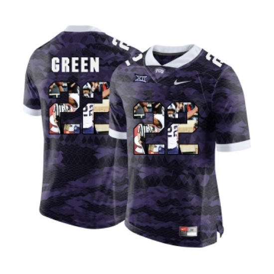 >TCU Horned Frogs 22 Aaron Green Purple With Portrait Print College Football Limited Jersey