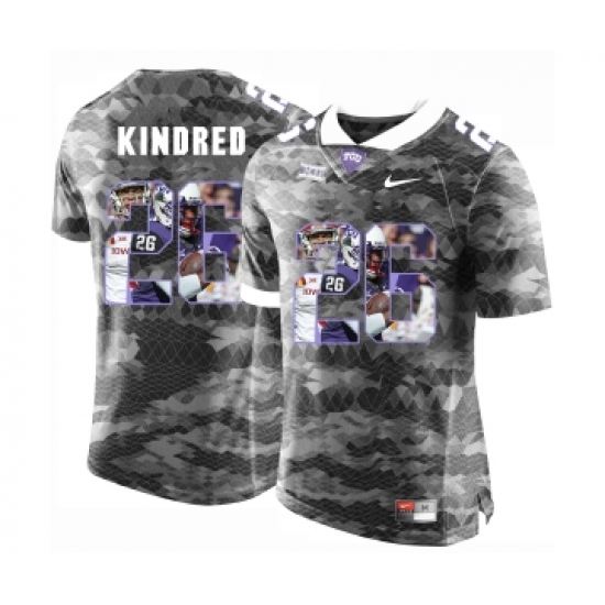 >TCU Horned Frogs 26 Derrick Kindred Gray With Portrait Print College Football Limited Jersey