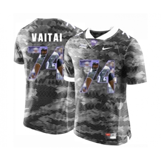 >TCU Horned Frogs 74 Halapoulivaati Vaitai Gray With Portrait Print College Football Limited Jersey