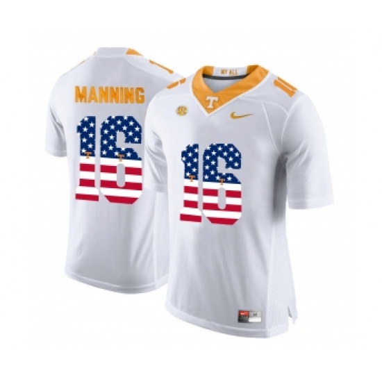 >Tennessee Volunteers 16 Peyton Manning White USA Flag College Football Jersey