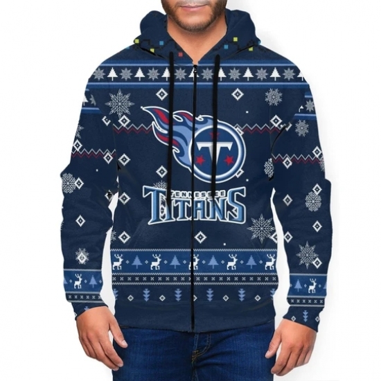 Titans Team Christmas Ugly Men's Zip Hooded Sweatshirt