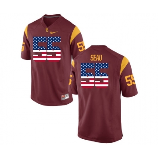 USC Trojans 55 Trojans Seau Red USA Flag College Football Jersey