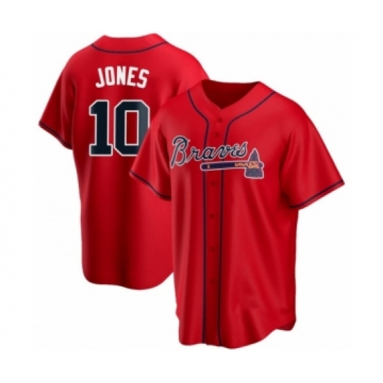 >Women Chipper Jones #10 Atlanta Braves Red Replica Alternate Jersey