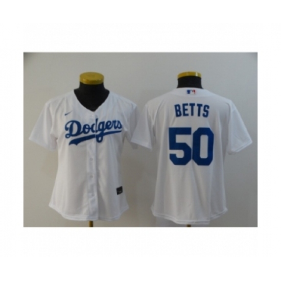 >Women Los Angeles Dodgers #50 Mookie Betts White 2020 Cool Base Jersey