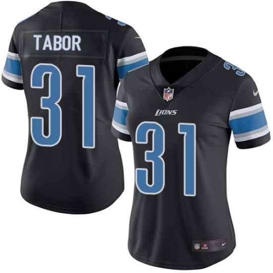 >Women Nike Detroit Lions #31 Teez Tabor Limited Black Rush Vapor Untouchable NFL Jersey