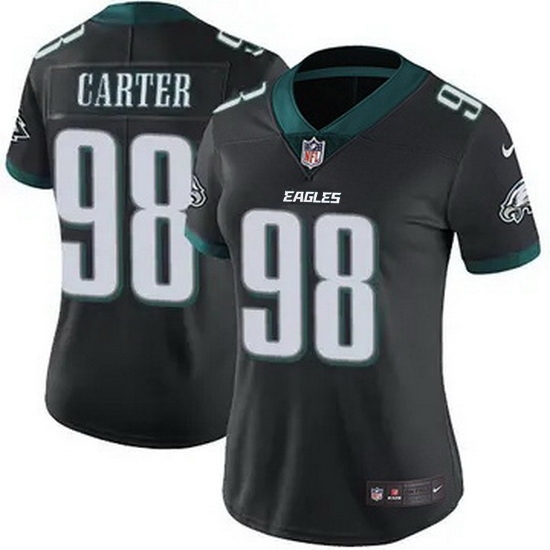 Women Philadelphia Eagles #98 Jalen Carter Black F U S E Stitched NFL Jersey
