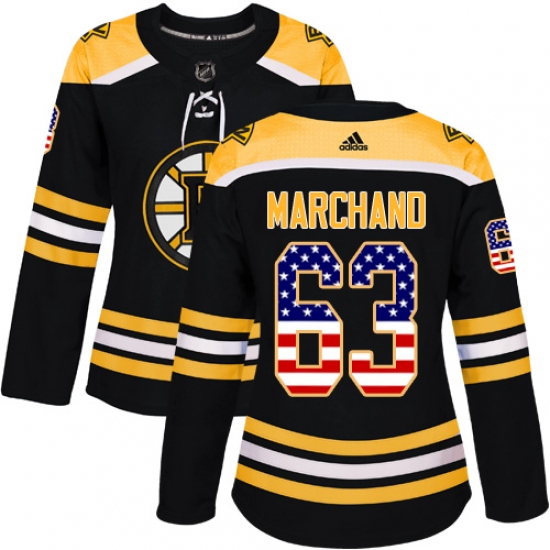 Women's Adidas Boston Bruins #63 Brad Marchand Authentic Black USA Flag Fashion NHL Jersey